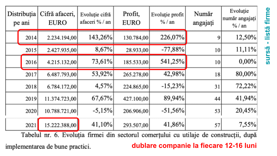 Până acum, am implementat secțiuni ale programului în companii care doreau să dezvolte echipe capabile să obțină rezultate de sine stătătoare, în care managementul operațional este gestionat prin delegare. Rezultatele au fost impresionante: dublarea cifrei de afaceri, dublarea randamentului. Am lucrat atât cu companii cu o cifră de afaceri sub 1 milion de euro, cât și cu companii cu cifre de afaceri de până la 70 de milioane de euro.